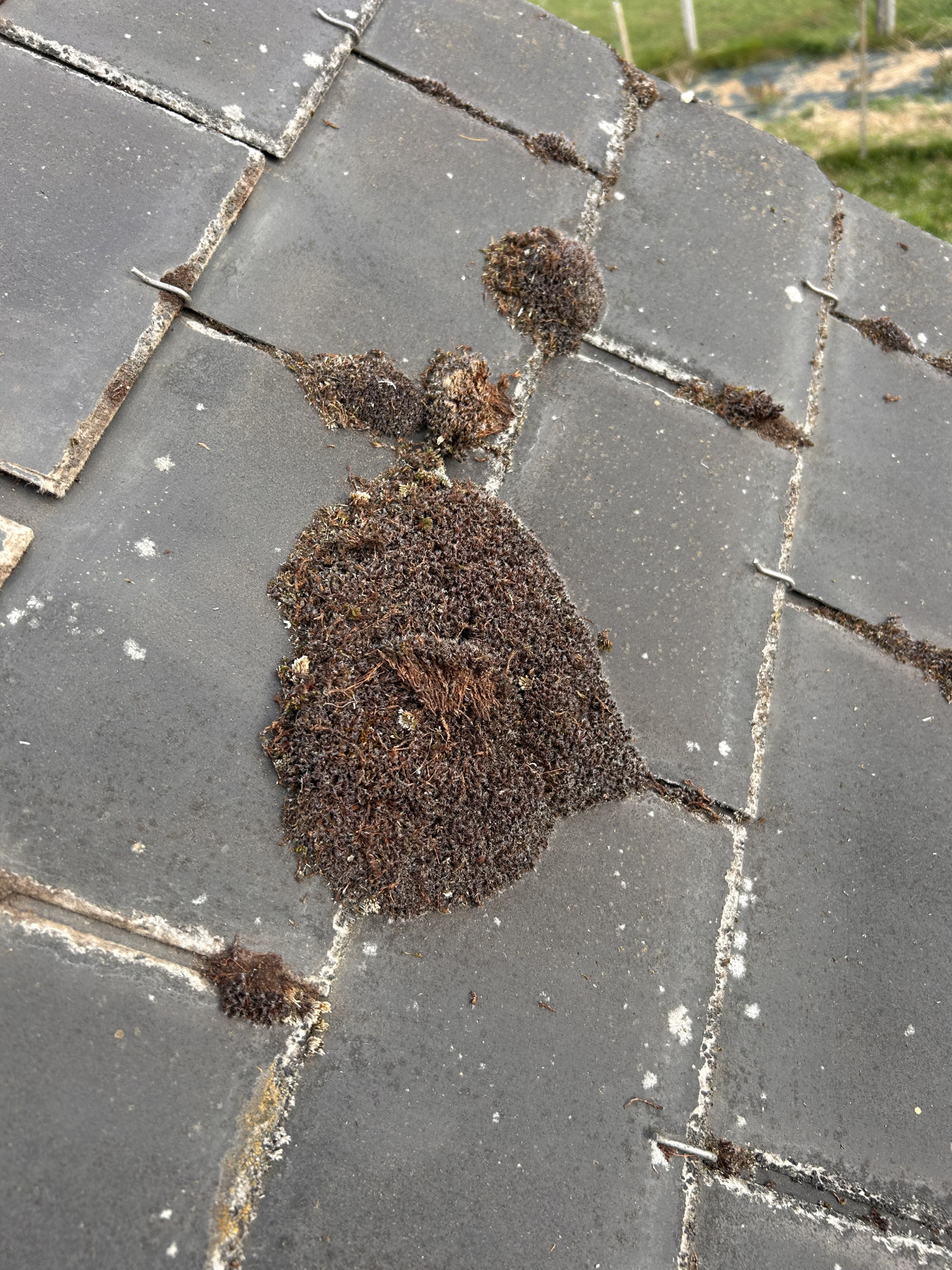 Une vérification complète de la toiture et du faîtage a été réalisée. Cette étape permet de détecter d’éventuels défauts (tuiles déplacées, fissures, infiltrations) et de s’assurer de l’état général de la couverture avant de procéder au nettoyage.