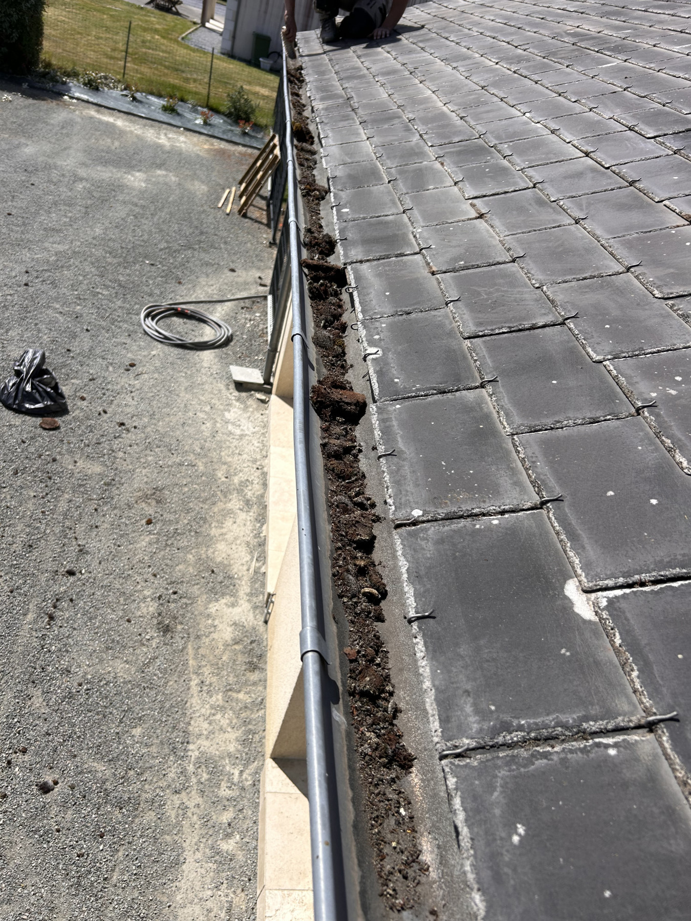 Un nettoyage complet des gouttières a été effectué afin d’assurer une bonne évacuation des eaux pluviales. Les débris végétaux accumulés sont souvent responsables d’obstructions et de débordements, il est donc essentiel de les éliminer régulièrement.