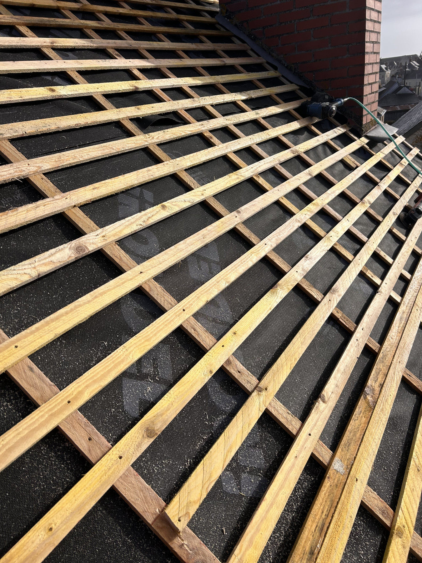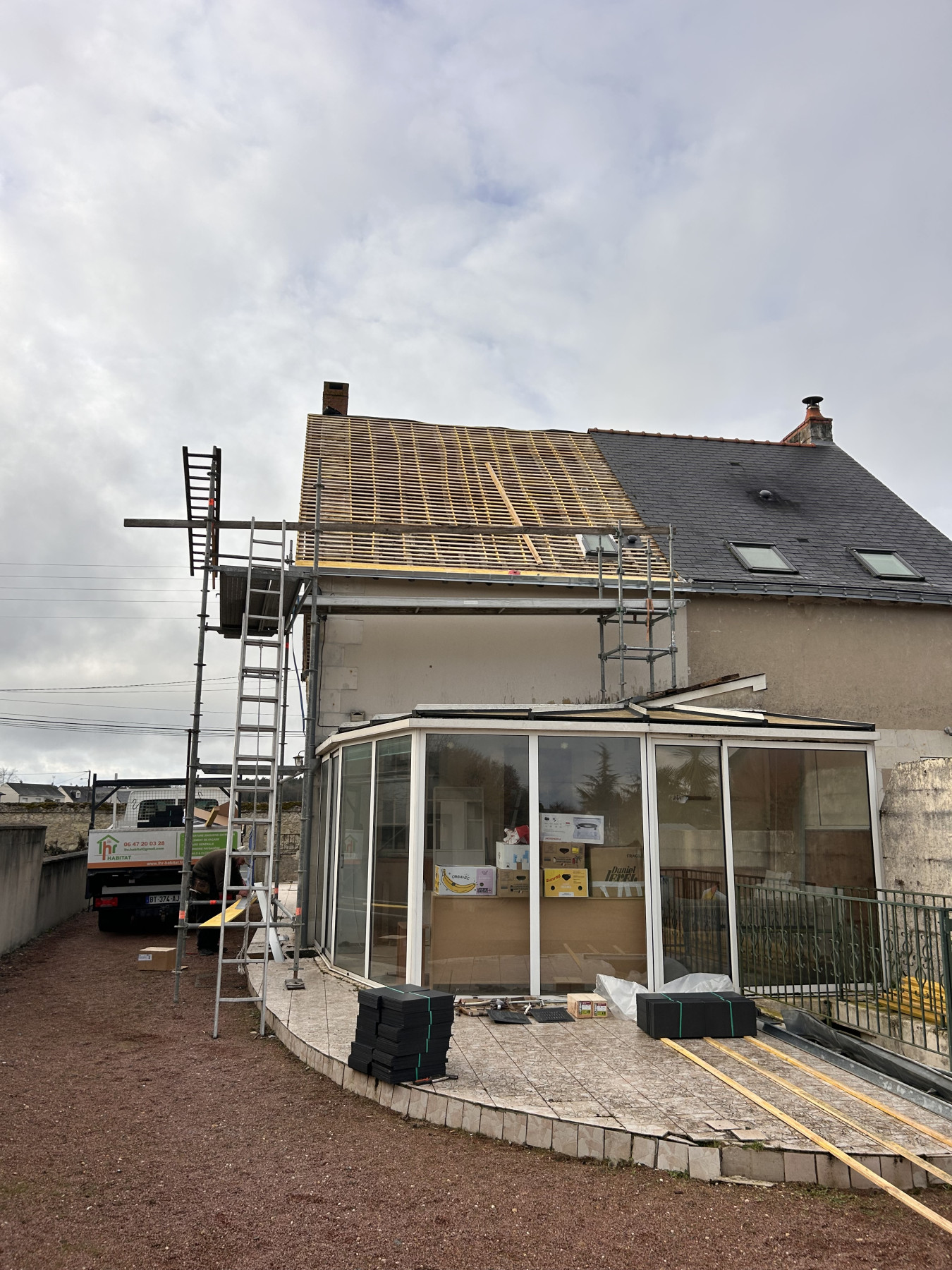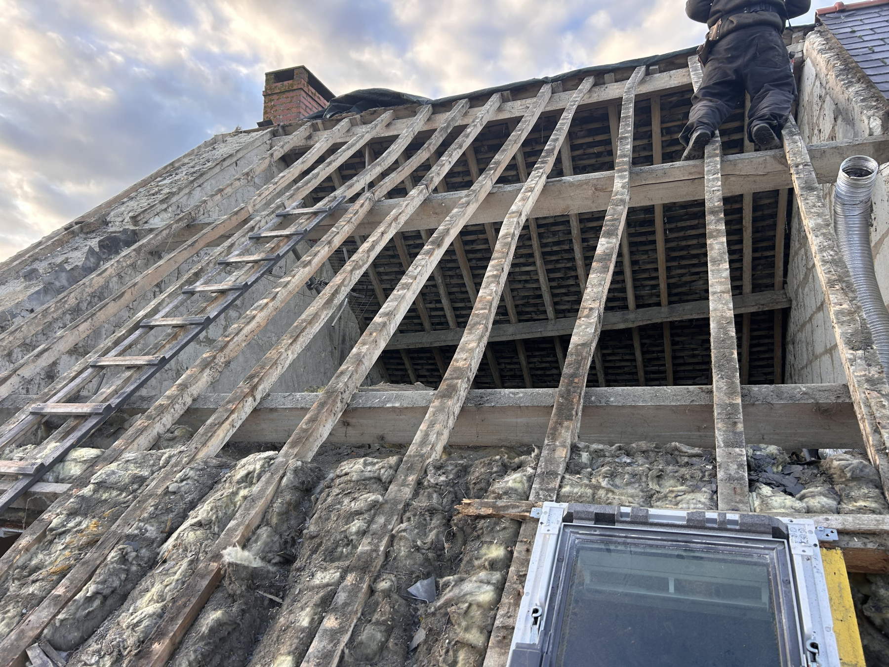 L’entreprise LHR Habitat est intervenue chez un client pour une rénovation complète de toiture, comprenant le redressage de charpente, le remplacement des éléments de zinguerie et la pose d’une nouvelle couverture en ardoises. Ce chantier illustre le savoir-faire technique de l’entreprise en travaux de couverture et rénovation de toiture.